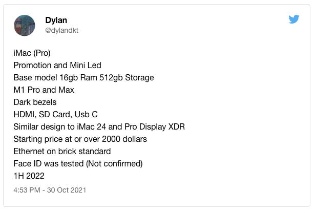 Het voelt ergens logisch... nieuwe grote iMac aan het begin van 2022, en dan de transitie aan het einde van dat jaar afsluiten met een gloednieuwe Mac Pro.