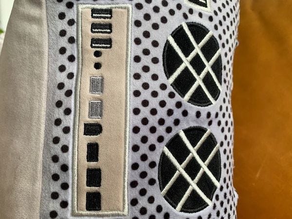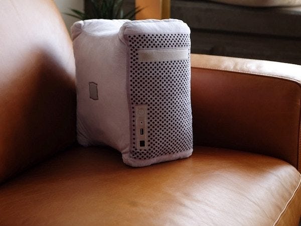 Het mag de pret niet drukken. Al was het maar omdat de andere details zo lekker kloppen. Wat dacht je bijvoorbeeld van een kussentje met FireWire-poorten?