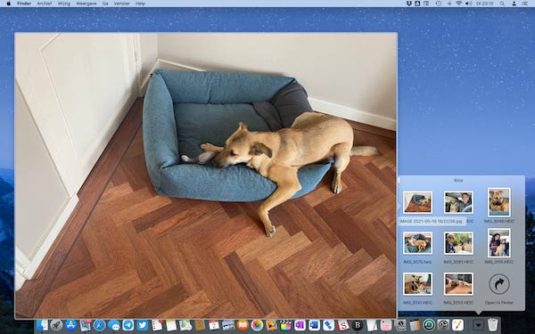 Om het af te sluiten: een macOS-tip! Je kent 'Snelle weergave' vast: selecteer een bestand in je Finder of op je bureaublad, druk op de spatiebalk, en je ziet meteen een voorvertoning. Zonder dat er een app wordt opgestart om dat bestandstype te openen. Maar wist je dat je Snelle weergave (bij de meesten bekend onder de Engelse naam Quick Look) ook kunt gebruiken met bestanden in je Dock? Probeer het maar eens... je hebt vast de Download-map in je Dock staan. Of anders misschien een andere map. Klik op die map, en de bestanden die erin zitten springen als een stapel in beeld. Zodra je een bestand aanklikt, opent het in het bijbehorende programma. Dus hoe gebruik je Snelle weergave dan? Door niet te klikken! Plaats je muispijl op het bestand dat je wilt bekijken en druk op de spatiebalk. Dat is alles! Een snelle weergave springt in beeld. Maar niet klikken dus!