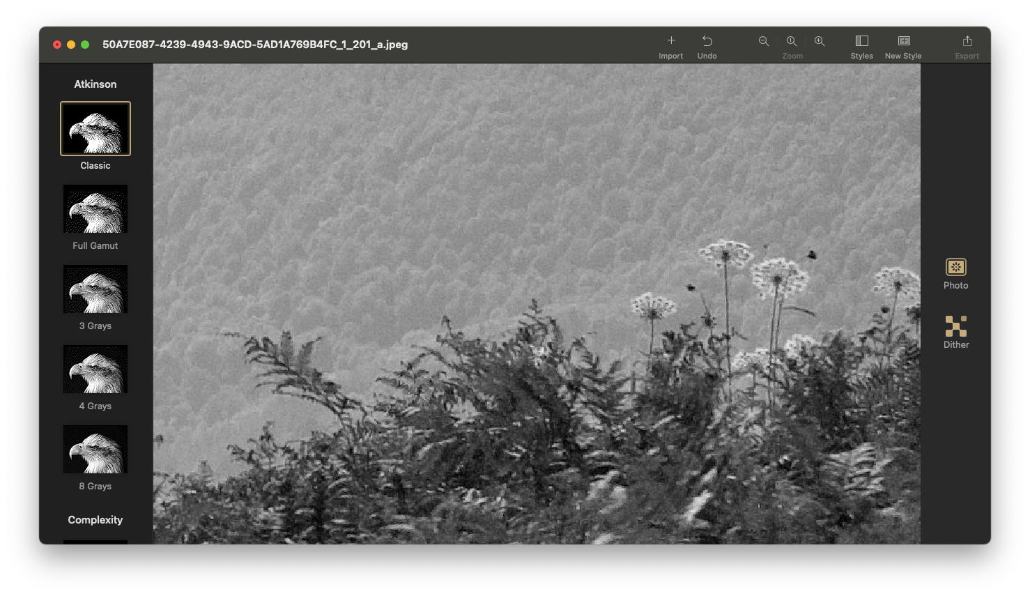 Misschien omdat HyperDither een beetje beter dithert dan andere apps. De programmeur achter HyperDither, John Balestrieri, herontdekte een dither-algoritme dat door Bill Atkinson was ontwikkeld. Atkinson werkte bij Apple en was de vader van MacPaint, QuickDraw en HyperCard. Apple gebruikte het algoritme voor het laatst in HyperScan-software, en daarna raakte het in de vergetelheid. Maar Balestrieri was het niet vergeten. In 2003 – inmiddels alweer twintig jaar geleden – nam hij contact op met Atkinson en vroeg hem om zijn algoritme. Zo kwam ‘Atkinson dithering’ opnieuw tot leven. En volgens sommigen is het een superieur algoritme vergeleken met andere dither-opties. Voor € 2,99 kun je er zelf ook eens mee spelen.