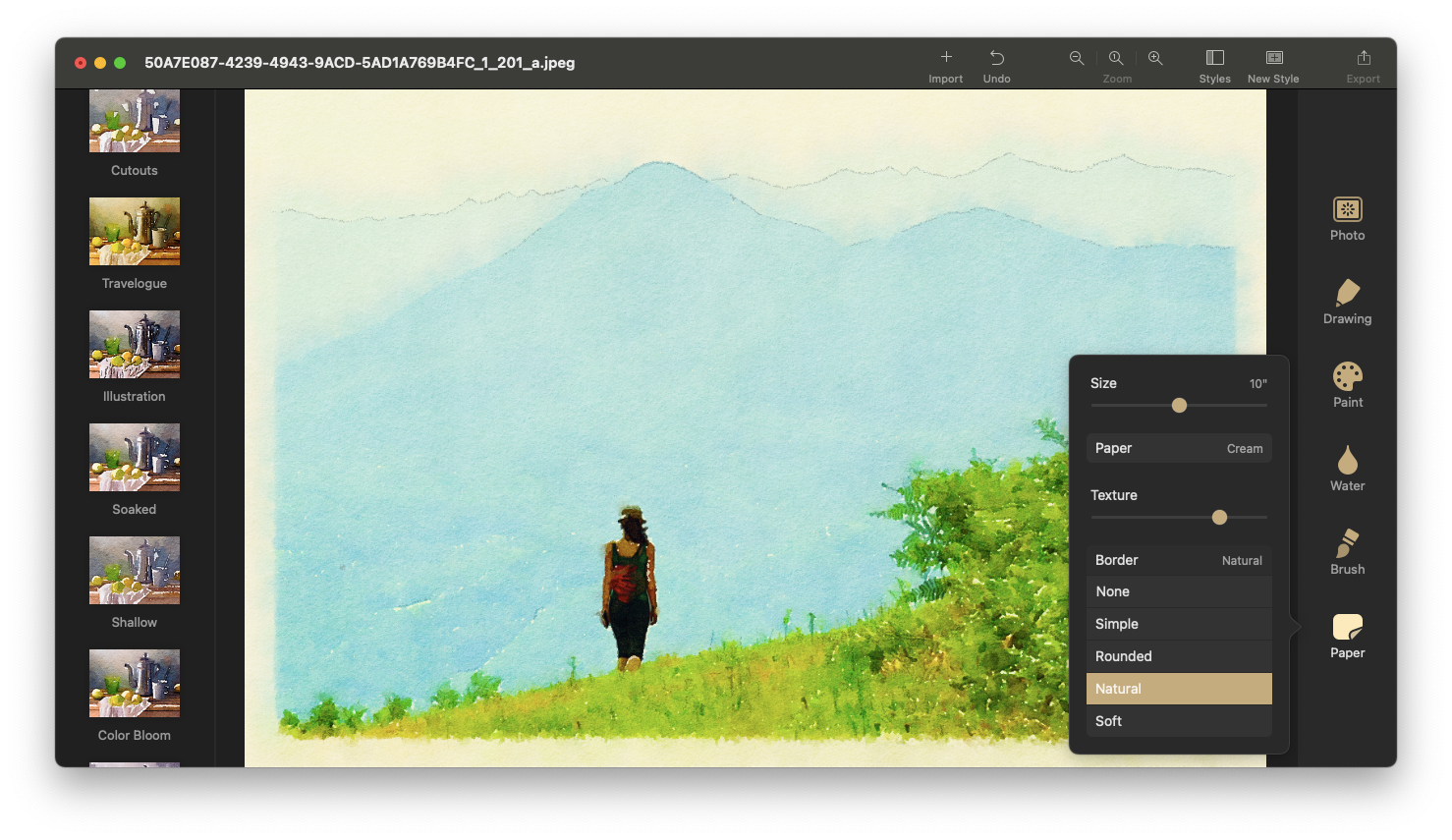 De filters in Waterlogue Pro zijn eigenlijk niet eens zo veel anders dan in de iPhone-app. Maar in de Mac-versie kun je wel bestanden opslaan en later verder bewerken. En je kunt je kunstwerken ook op enorme resolutie opslaan. 4K is nog niks; je kunt je aquarel ook op 16K wegschrijven. Handig als je er behang van wilt maken, of zoiets.