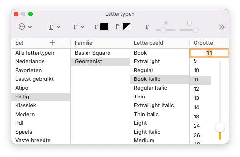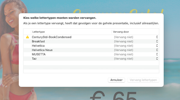 Fonts komen op allerlei manieren op je Mac terecht. macOS is standaard met een collectie lettertypes uitgerust, maar Microsoft Office installeert bijvoorbeeld ook een hele letterverzameling. Net als veel andere programma's. Daarnaast heb je zelf misschien wel eens een font gekocht of van het web gedownload. Door de jaren heen wordt je collectie lettertypes steeds groter. Als je naar een nieuwe Mac gaat, ben je die voor een deel kwijt. Welke fonts door programma's worden geïnstalleerd, verandert door de jaren heen. En dan open je dus een Keynote-presentatie op je nieuwe Mac, en constateert Keynote dat er een font ontbreekt. Je wordt meteen gevraagd door welk ander font je het ontbrekende lettertype wilt vervangen.